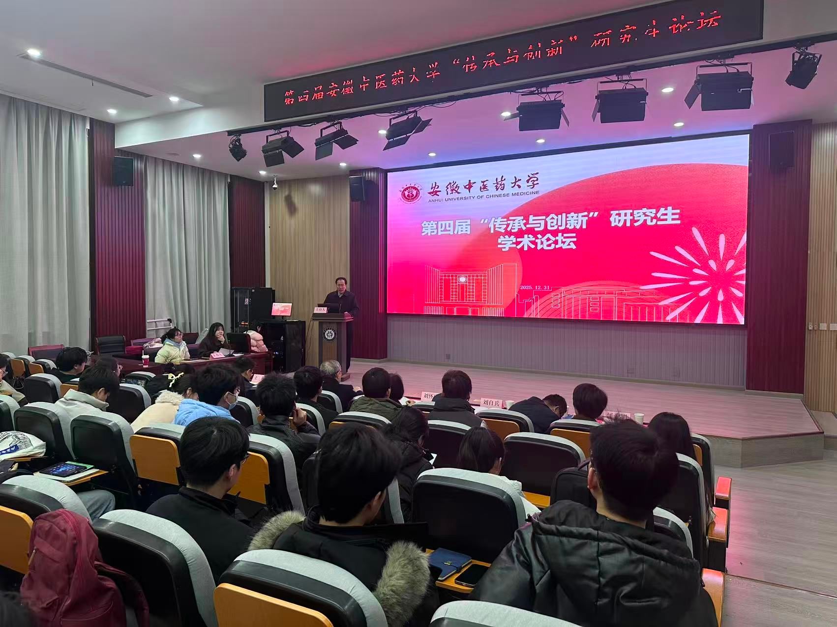2025年12月31日,安徽中医药大学第四届研究生“传承与创新”学术论坛决赛圆满结束。本次论坛以“传承精华、守正创新”为主题,吸引了全校13个研究生培养单位500余名博硕士研究生的广泛参与,共收到学术论文和实践成果564篇(个),数量再创新高。经过校内专家初评、校外专家盲审和现场答辩,最终产生一等奖6名、二等奖9名、三等奖12名。